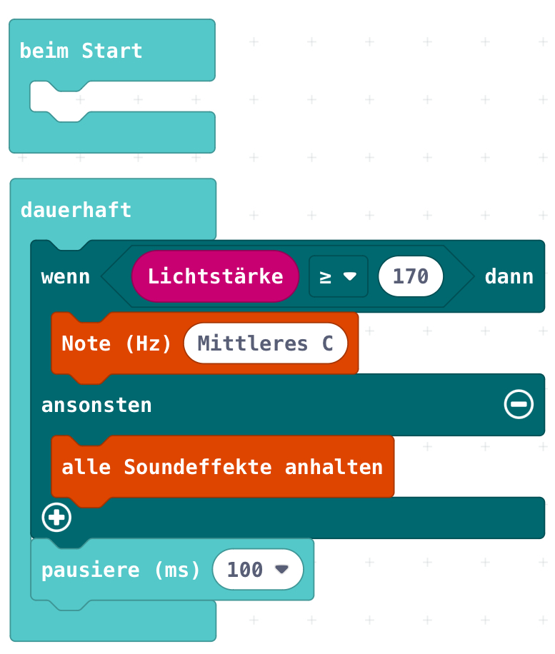 einstellen (falls du den entsprechenden Sensor-Block aus dem Menü „Eingabe“ verwendest).