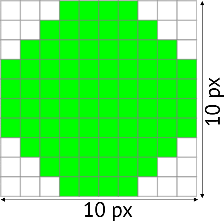Bei dem Bild von 10x10px ist die Auflösung 100 Pixel.